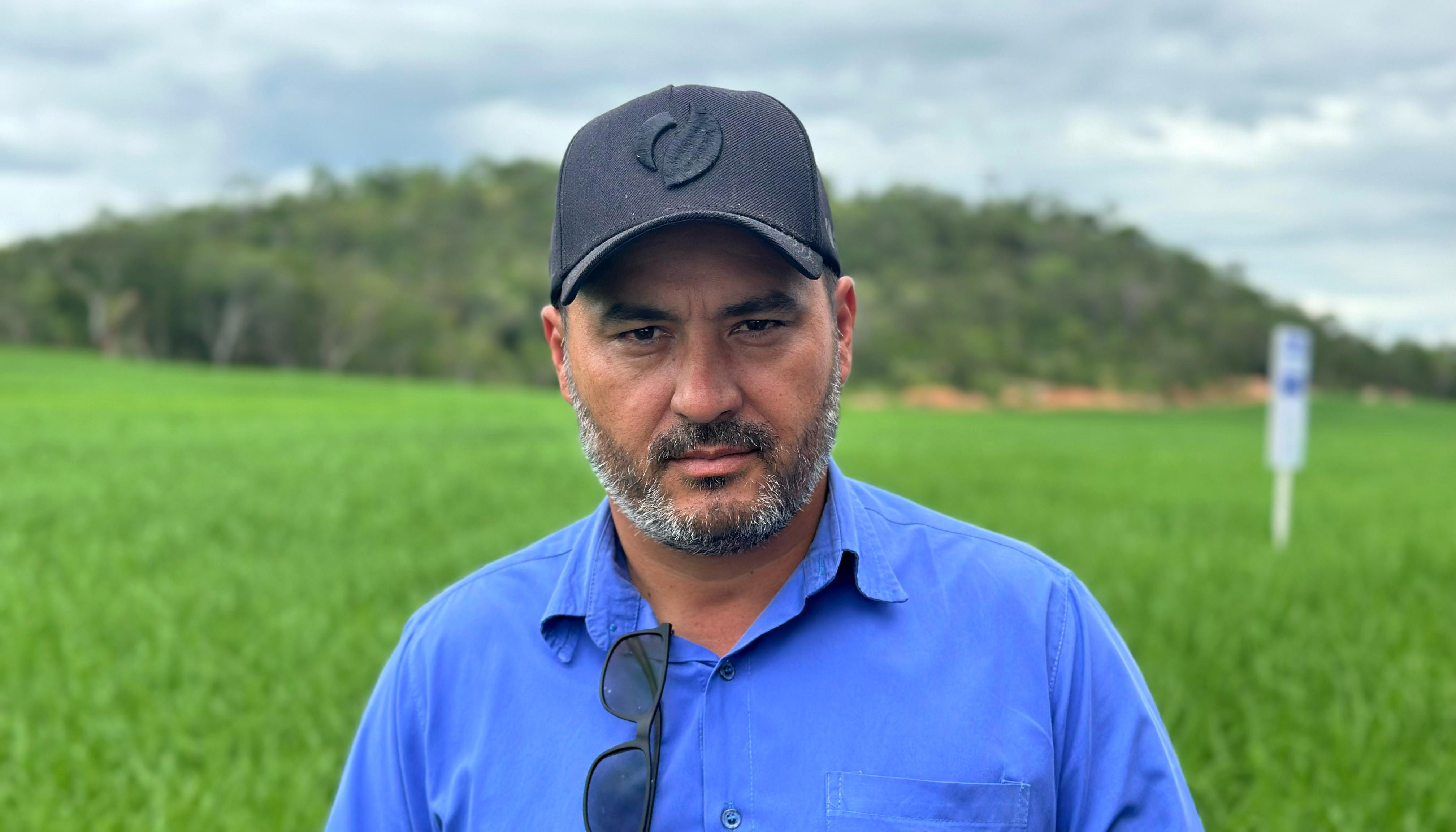 Um dos proprietários da fazenda, Adriano Fernandes, explicou o plantio do arroz sequeiro em sua propriedade – Guilherme Alves/Governo do Tocantins file_download
