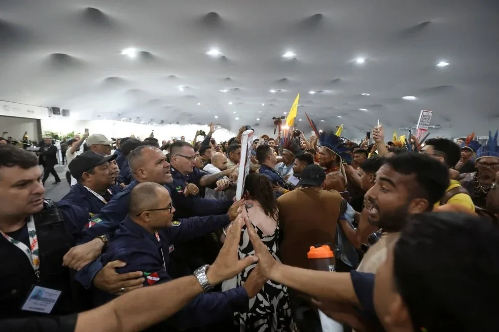 Um protesto realizado no começo da noite desta terça-feira (11), segundo dia da COP30, deixou quatro seguranças feridos e bloqueou a saída de pessoas que estavam credenciadas para a blue zone. A área concentra os espaços de negociação da Conferência do Clima.
