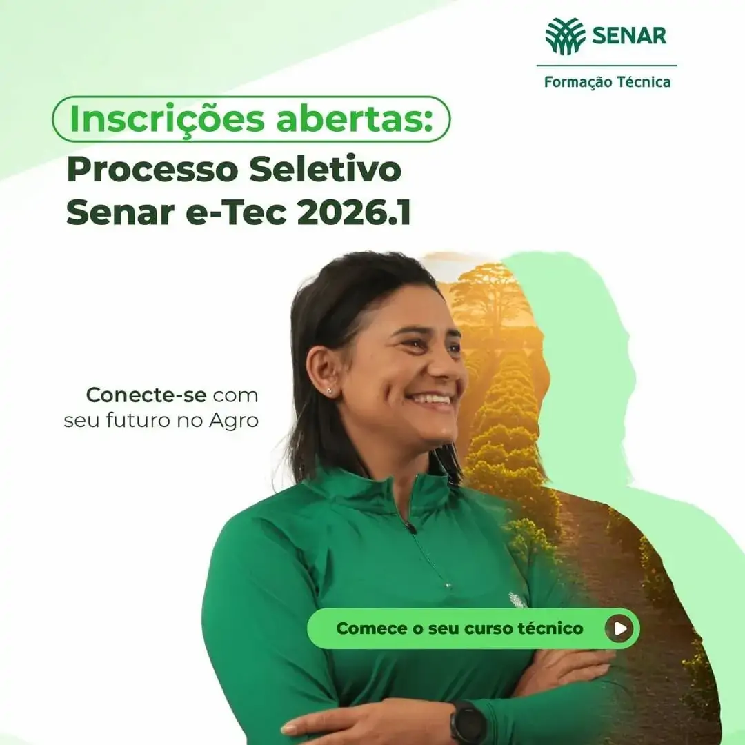 Reconhecido pela excelência no ensino voltado ao agronegócio, o SENAR oferece uma estrutura completa e metodologia voltada para a prática profissional, preparando os estudantes para os desafios do mercado.